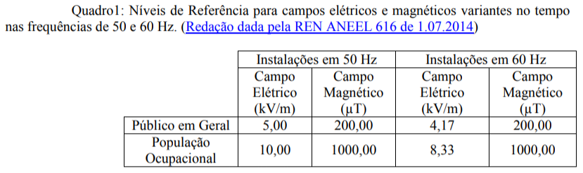 Elaboração de procedimentos preventivos de segurança à exposição do público em geral e da população ocupacional aos campos elétricos e magnéticos, com Nível de Referência de campo elétrico e magnético variáveis no tempo, para avaliação prática e expedita da exposição humana, estabelecidos pela Comissão Internacional de Proteção Contra Radiação Não Ionizante – ICNIRP e recomendados pela OMS a partir das Restrições Básicas, considerando fatores de segurança que asseguram o atendimento destas restrições em conformidade com a RESOLUÇÃO NORMATIVA Nº 398, DE 23 DE MARÇO DE 2010.